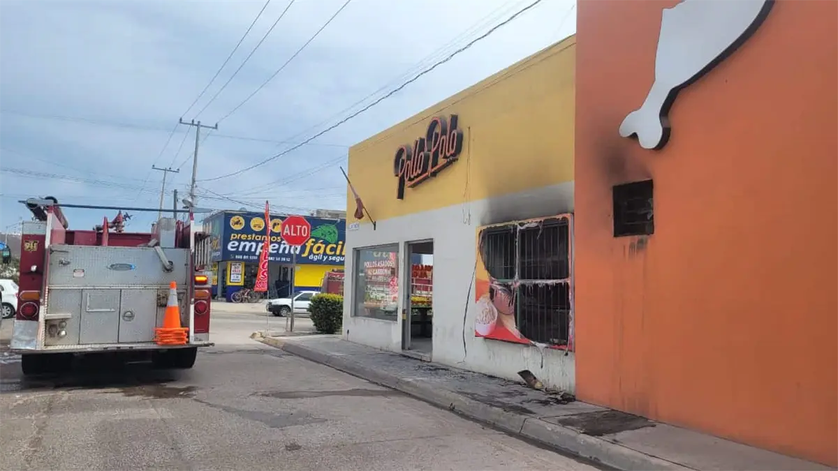 El fuego comenzó en el área de rostizados de un local de venta de pollos asados; posteriormente se extendió hacia la pared, luego se propagó hacia la pintura y una lona de publicidad que estaba colgada en la ventana.