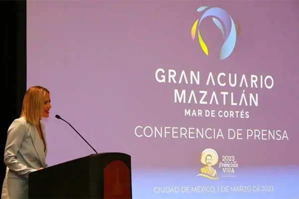 En su visita a Ciudad de México, Estrella Palacios Domínguez, Secretaria de Turismo de Sinaloa, presentó el Gran Acuario Mazatlán Mar De Cortés, apuntando a la obra como una que marcará un antes y un después para el puerto, ofreciendo un espacio turístico de primer mundo.