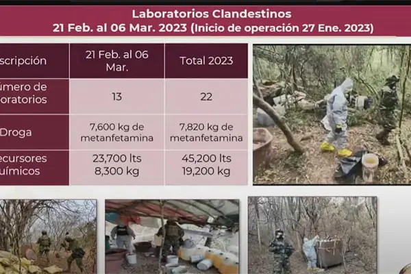 Decomisan 3 laboratorios clandestinos de metanfetamina en Sinaloa de Leyva