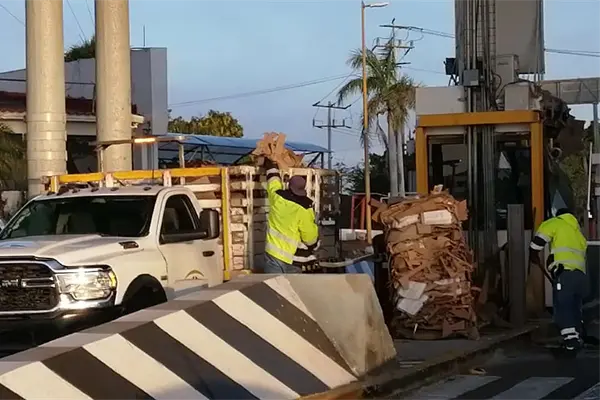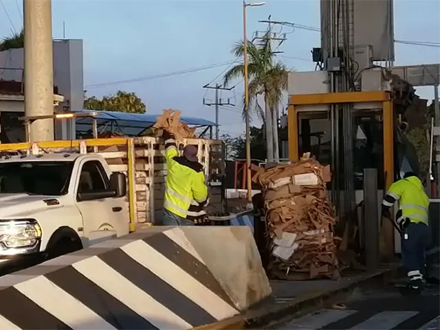 Tráiler cargado con cartón choca contra caseta de cobro de Costa Rica