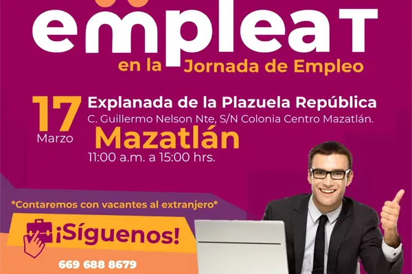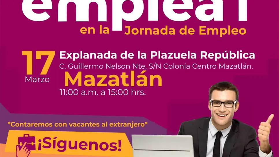 La cita es mañana viernes en punto de las 11:00 y hasta las 15:00 horas, en la explanada de la Plazuela República, en Mazatlán, donde se contará con vacantes a países extranjeros, como Estados Unidos, Alemania y Canadá.