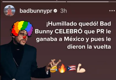 Tal fue el caso del cantante Bad Bunny, que en una historia supuestamente se burlaba de los mexicanos y aplaudía a Puerto Rico... que terminó por perder por una carrera.
