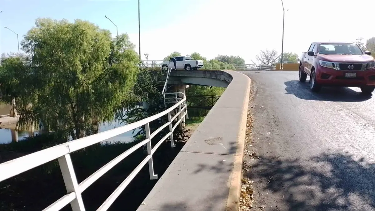 Caída de auto en puente de Malecón Viejo deja peligrosa estructura expuesta en Culiacán