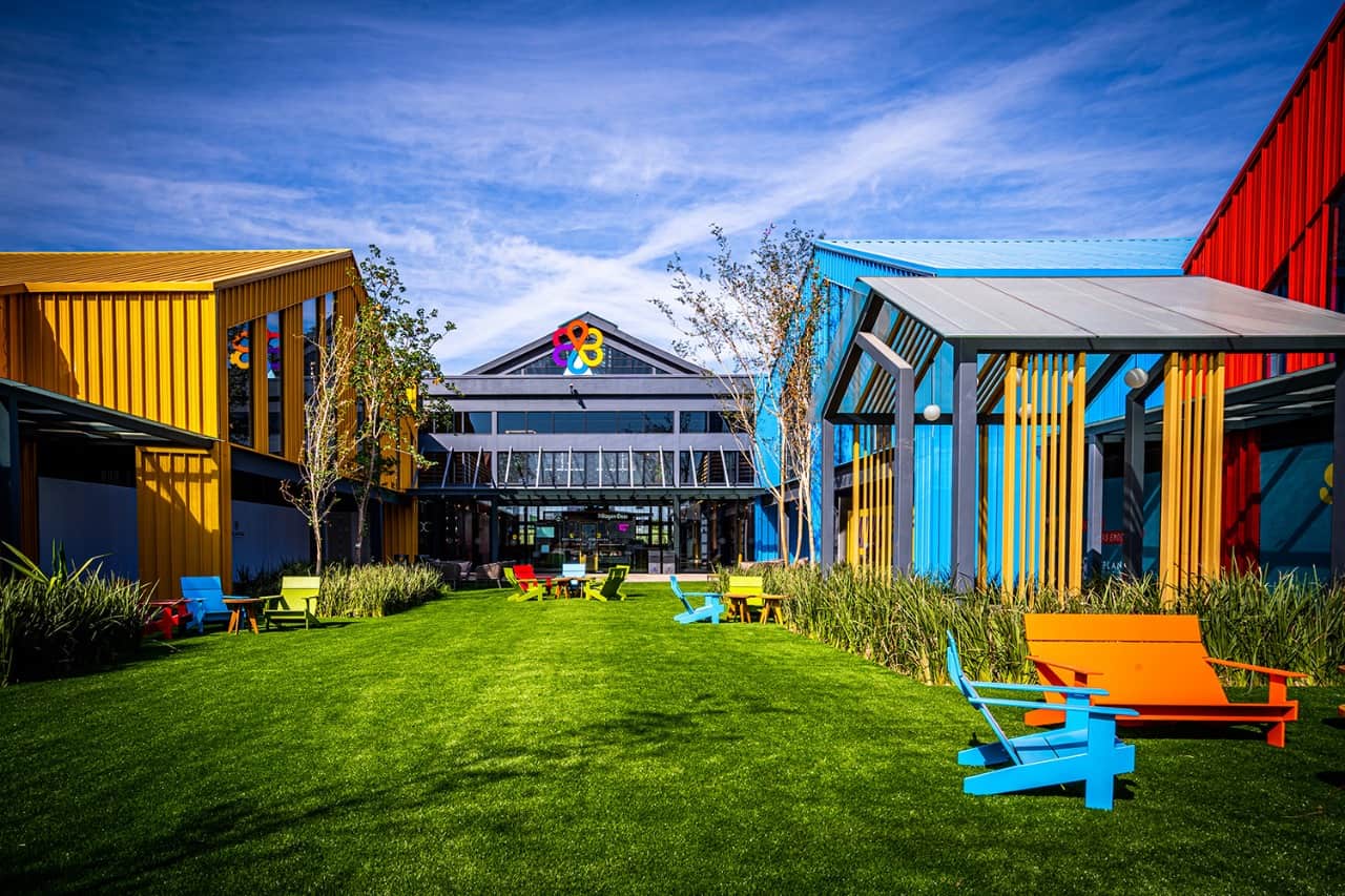 Fachada: El diseño se asemeja mucho al de un «Mall» de Estados Unidos. Grandes y espaciosos pasillos, partes tanto refrigeradas como al aire libre y fachada hasta cierto punto «desértica».