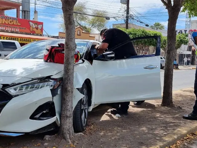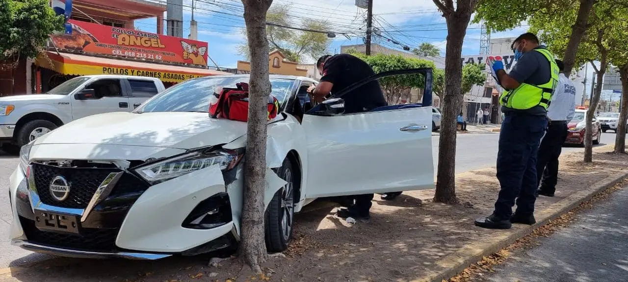 Joven pierde el conocimiento mientras conducía y se impacta contra un árbol en Los Mochis