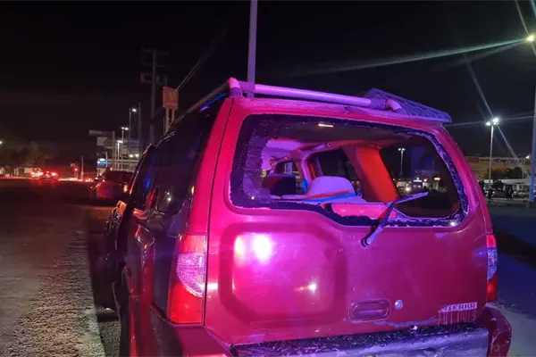 Al accidentarse destrozó el cristal trasero de la camioneta y terminó fracturado de la mano izquierda.