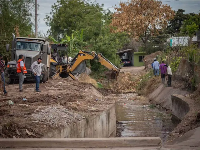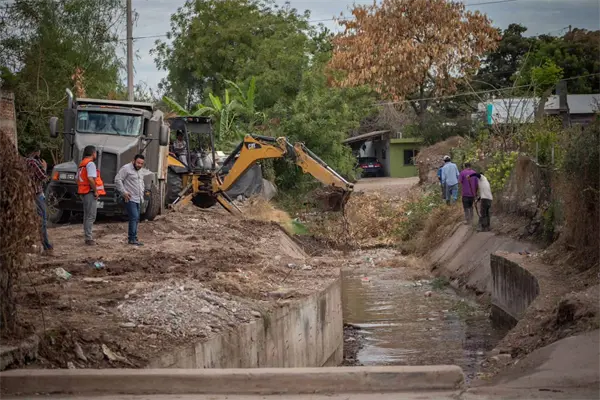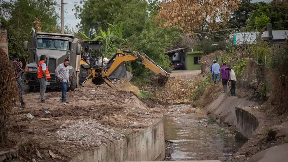Estas labores se extienden hasta la colonia Buenavista, por donde cruza dicho canal y a donde Gámez Mendívil acudió también acompañado de la Secretaria de Obras Públicas, Arlette Díaz León, y la Secretaria de Bienestar, Alyne Kristabel Guerra García.