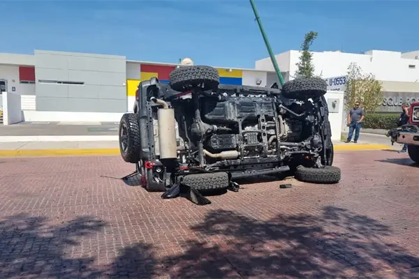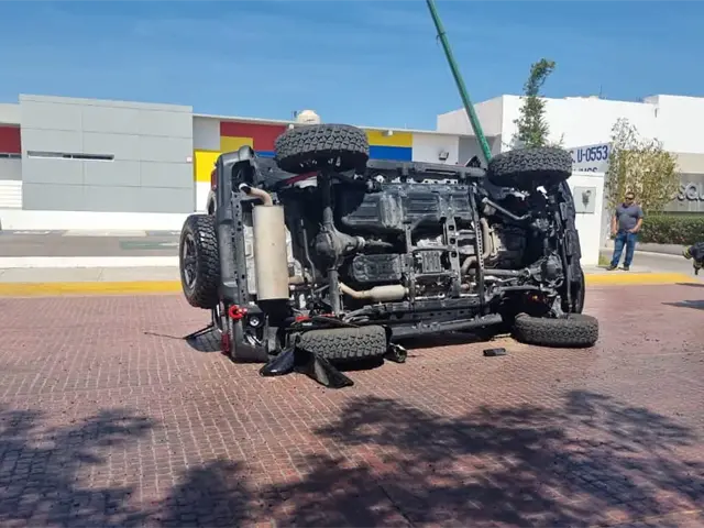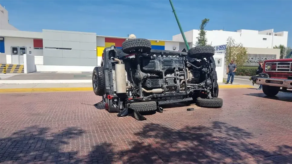 Un conductor terminó volcado frente a una guardia de la Universidad Autónoma de Sinaloa en la colonia Bosques del Roble. Al llegar, personal de bomberos localizaron una camioneta Jeep Rubicon con placas VKT 172-C de Sinaloa.