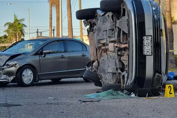 Un joven que circulaba a exceso de velocidad y en estado de ebriedad, por las calles del centro de Los Mochis, provocó un accidente que derivó la volcadura de un taxi ejecutivo en el que viajaba el chofer y dos radiooperadoras, una de ellas perdió la vida.
