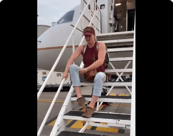 Un video que circula en redes sociales muestra el momento en que Woputz tiene que bajar arrastrándose del avión, ante la falta de una rampa y la ayuda del personal del aeropuerto.