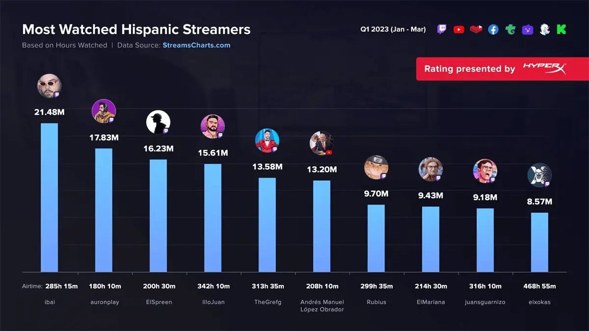 La cuenta de Twitter Streams Charts, que se encarga de realizar mediciones analíticas de transmisiones en vivo de Twitch, YouTube, Facebook Gaming, Kick y más, publicó al respecto: