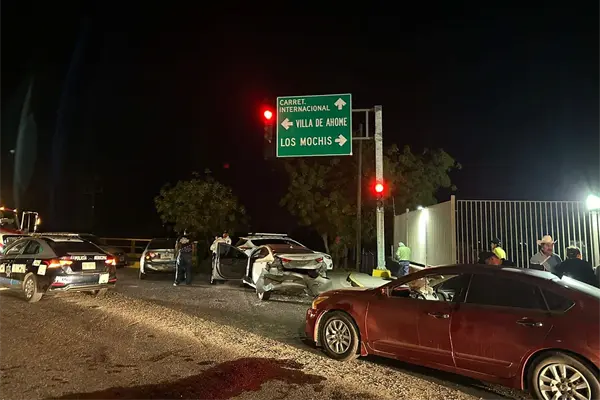 El accidente se registró sobre la carretera estatal Los Mochis-Ahome a la altura del entronque de Compuertas; entre un vehículo de la marca Nissan, línea Máxima, de color tinto, un vehículo de la marca Hyundai, línea Elantra, de color plata y modelo reciente, y un automóvil marca Toyota, línea Corolla, de color verde, con placas de Sinaloa.