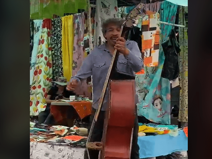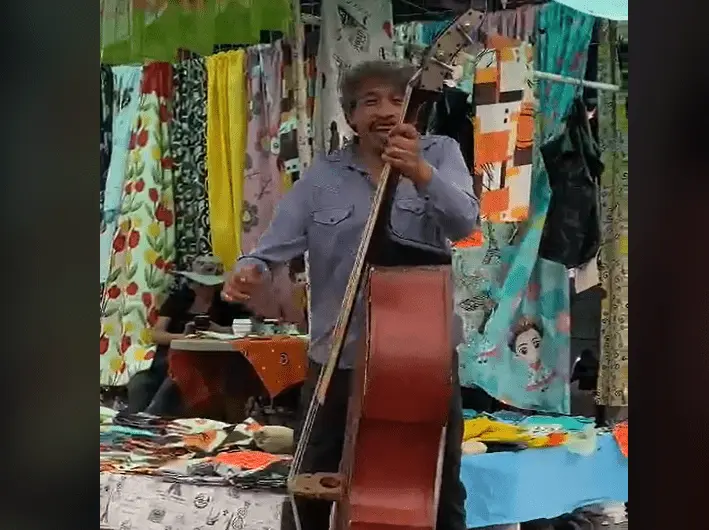 Mostrando una gran actitud y derrochando energía, este personaje fue captado en un tianguis de Cuautitlán, Estado de México, donde un usuario de TikTok, conocido somo Santi Araiza (@santiariza271), logró grabar algunos fragmentos de las canciones que interpretó y los subió a su cuenta, donde rápidamente se hicieron virales.