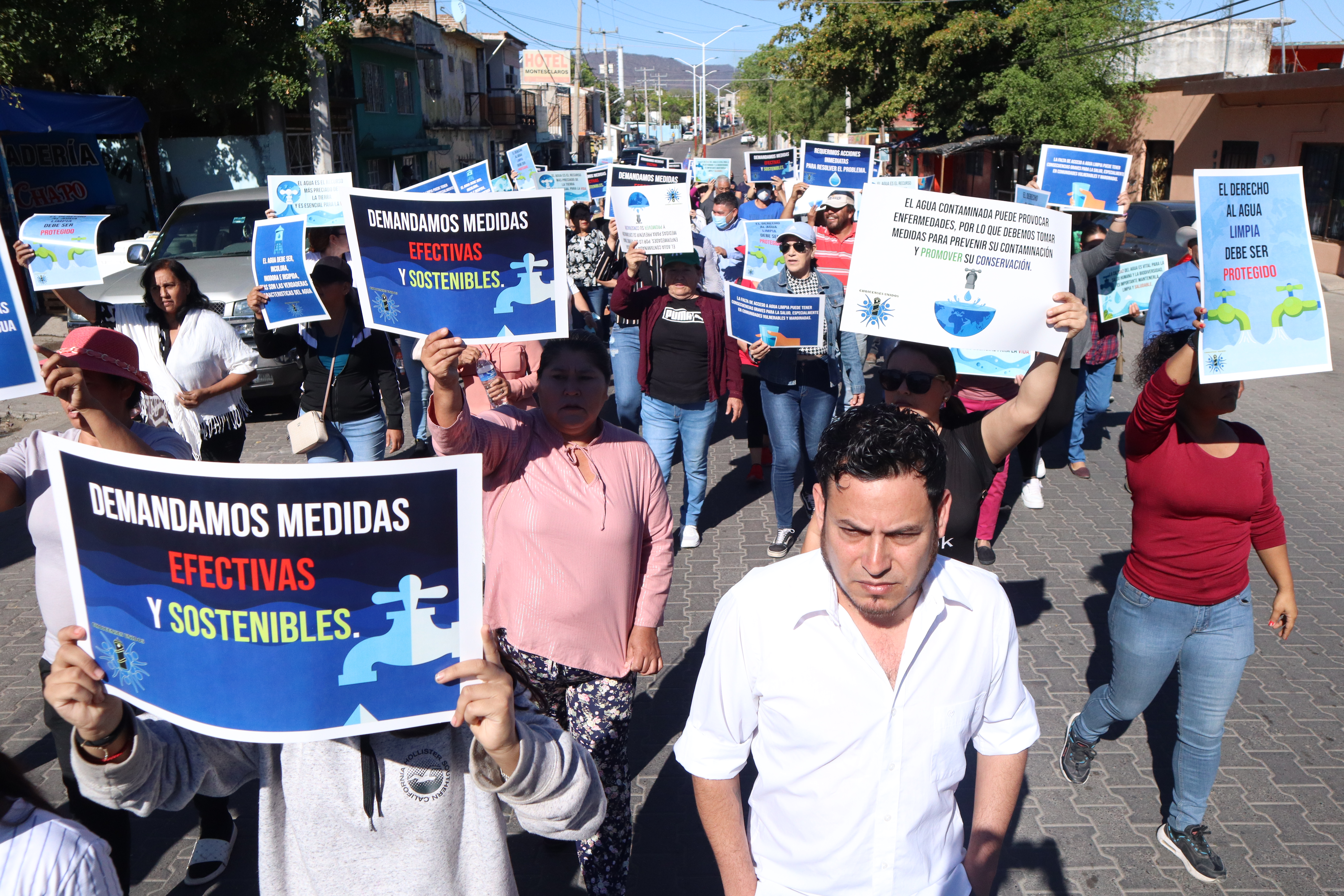 «En Choix no solo es que el agua estaba de un color extraño y con mal olor, no sólo era eso, sino que había un brote diarréico... Cuando se hizo el análisis del agua en Choix, identificamos una microalga. Esto fue por una filtración de agua rodada y creó las condiciones para que creciera esta microalga y se infectara el agua, eso le dio el olor y el color fue el manganeso», explicó.