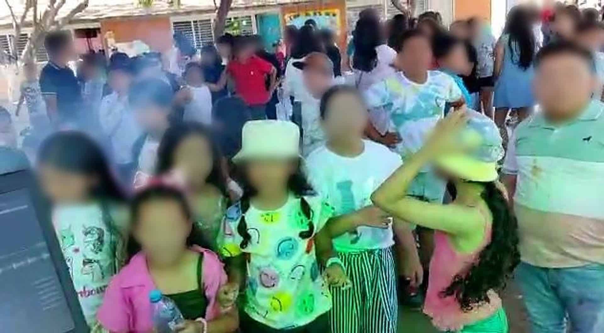 En las imágenes se observa a pequeños de una escuela del puerto cantando la canción «AMG» del cantante Peso Pluma, la cual fue grabado por los propios maestros de la primaria quienes sorprendidos observaban la situación.