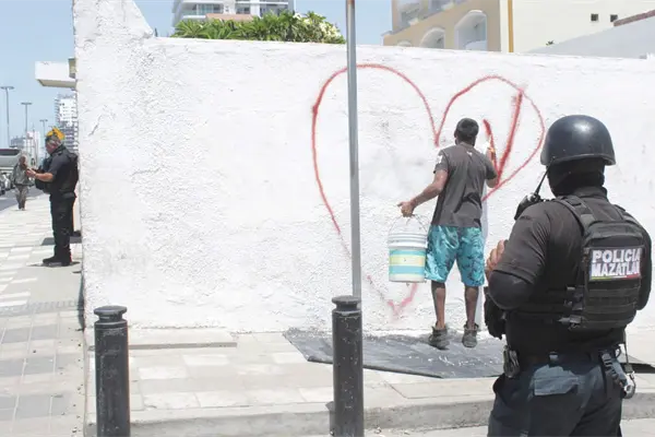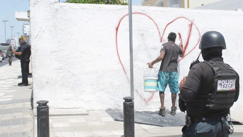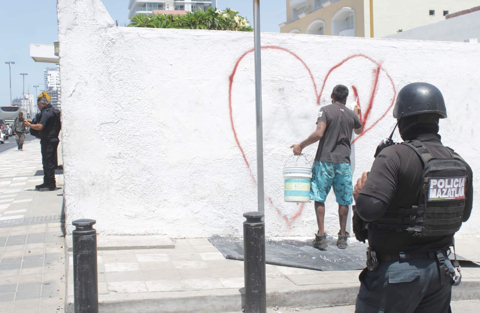Lo detienen grafiteando en pleno malecón y lo ponen a pintar en Mazatlán