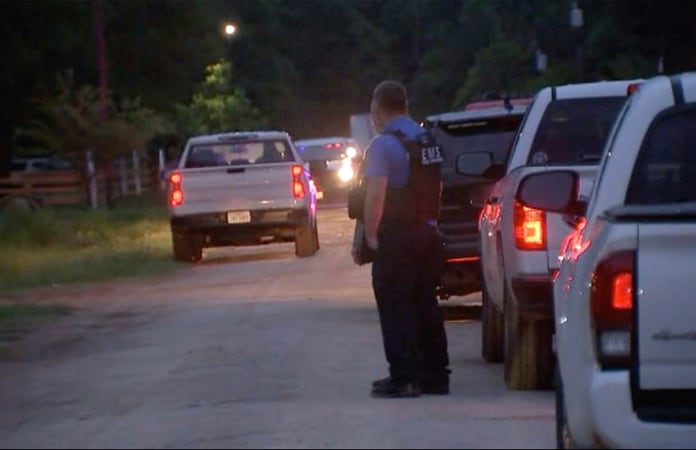 Greg Capers, comisario de San Jacinto, dijo que las autoridades buscaban al sospechoso de 39 años tras la masacre que se produjo durante la noche en Cleveland, una población 72 kilómetros (45 millas) al norte de Houston. Indicó que el sospechoso, a quien no identificó, usó un fusil AR-15 en la matanza.