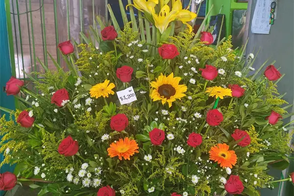 «Tenemos precios desde 150 pesos, 200, 350, 400 y el más grande de rosas con Luis girasoles y todo, lo tenemos ahorita en 1200 pesos que es el más grande, tiene de todas gerberas, girasoles, Lilis, rosales y es base de madera», aseguró Beatriz Santillán.