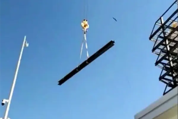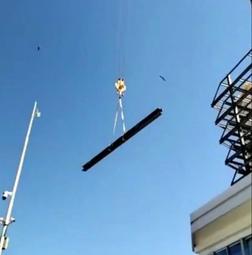 Y es que, en un video grabado por un ciudadano, muestra cómo una grúa dejó colgado por varios minutos una viga de metal de gran tamaño y muchos kilos de peso sobre el pleno malecón.