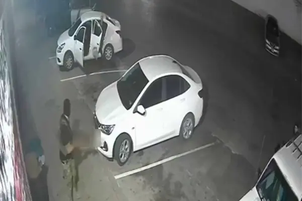 Posteriormente, los sicarios salen corriendo y se retiran del lugar, abordan el vehículo blanco. Y lo que se logra ver en la cámara es otro vehículo que se encuentra enfrente.