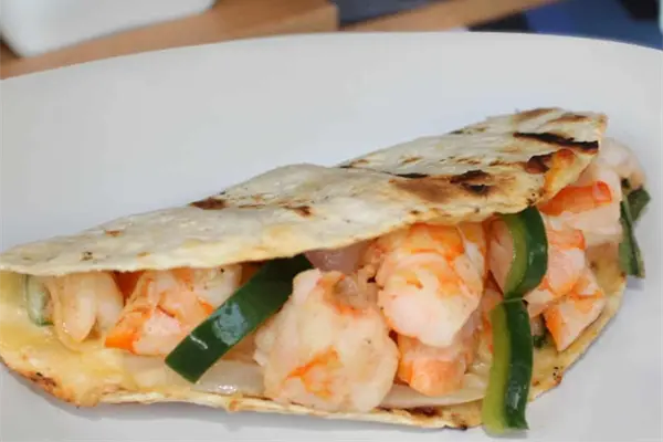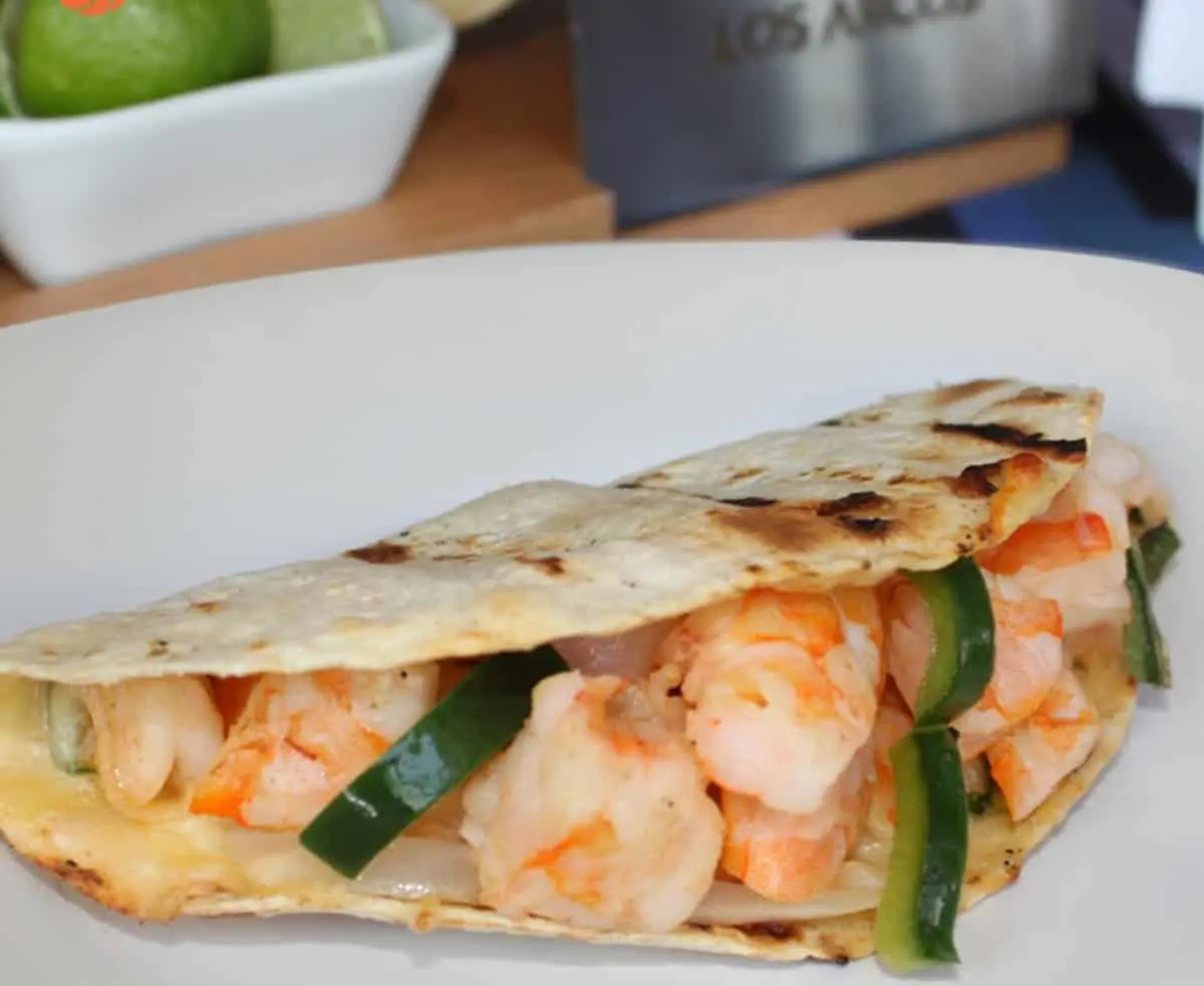 Se le ofreció a Labastida un taco de machaca de camarón con queso en tortilla de maíz, doradita al comal, con un sabor inigualable.