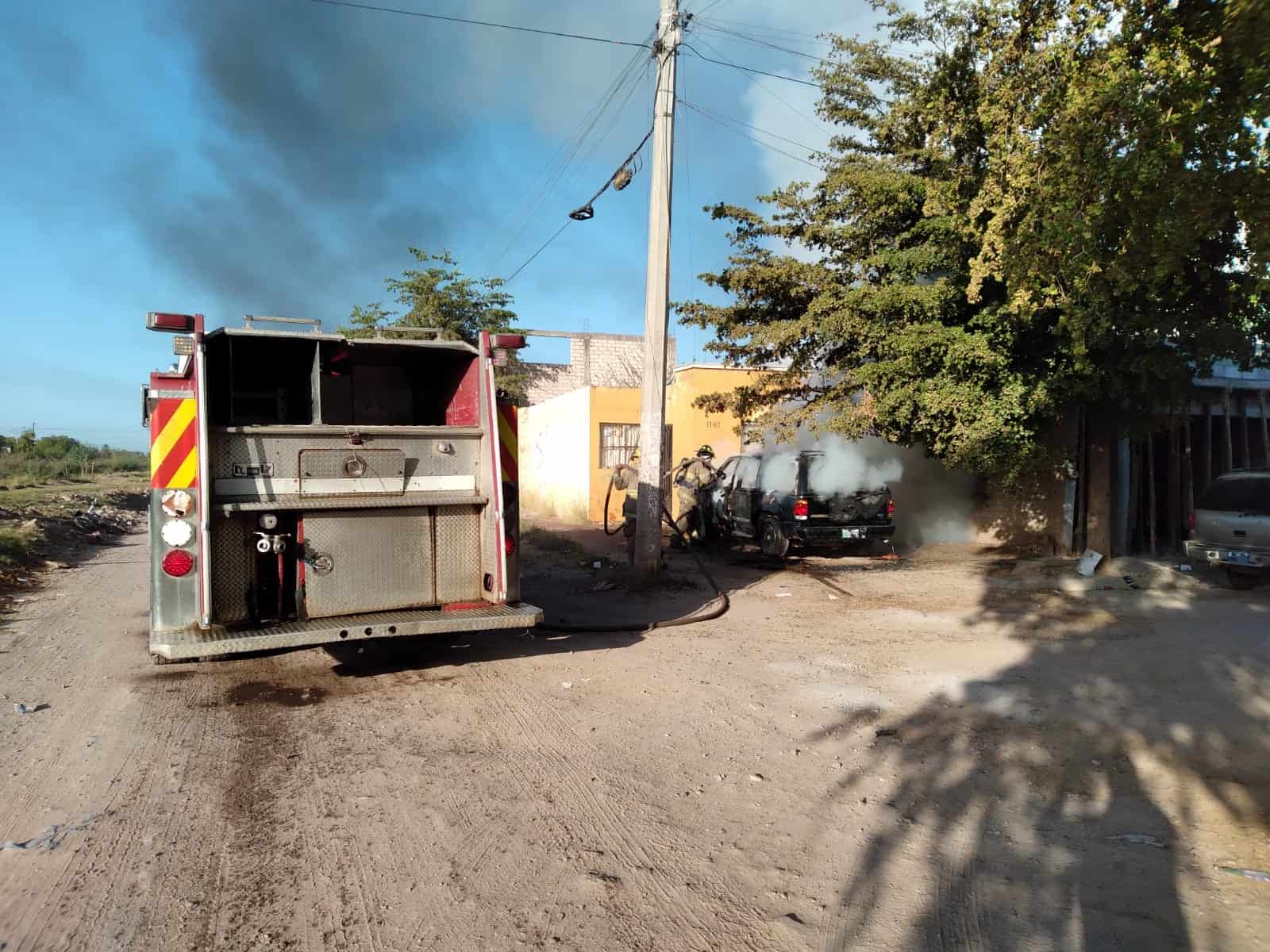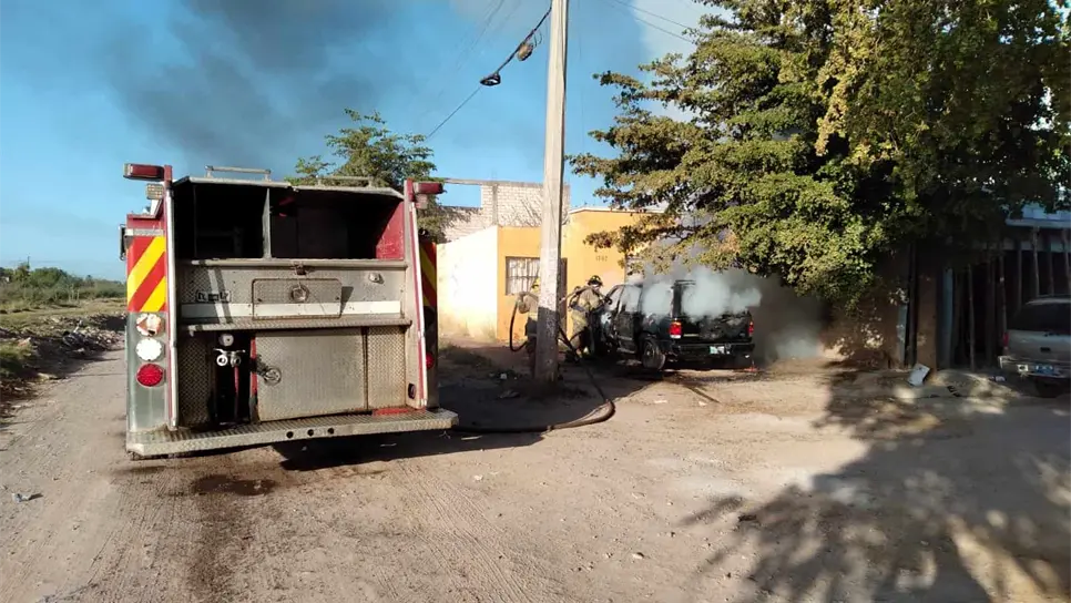 Tras el reporte del incendio de una camioneta y que amenazaba con propagarse hacia la vivienda, debido que se encontraba justo frente a la puerta, se movilizaron los elementos de bomberos de Los Mochis, al domicilio en mención.