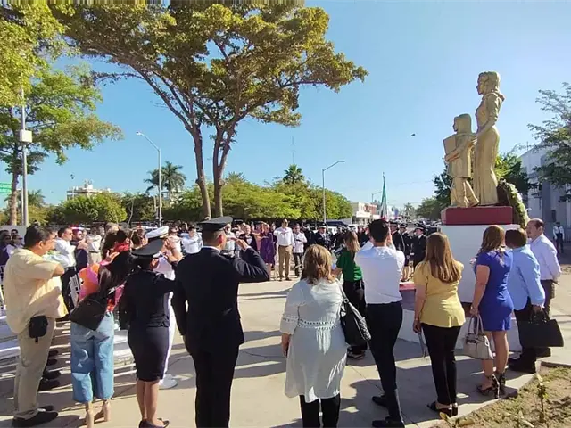 Autoridades municipales, militares, navales y educativas colocaron ofrenda floral en el monumento al Maestro.