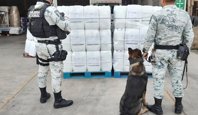 Los perros entrenados de la Guardia Nocional lograron ubicar 38 kilos de droga que estaban ocultos en un archivero en una paquetería de Culiacán.