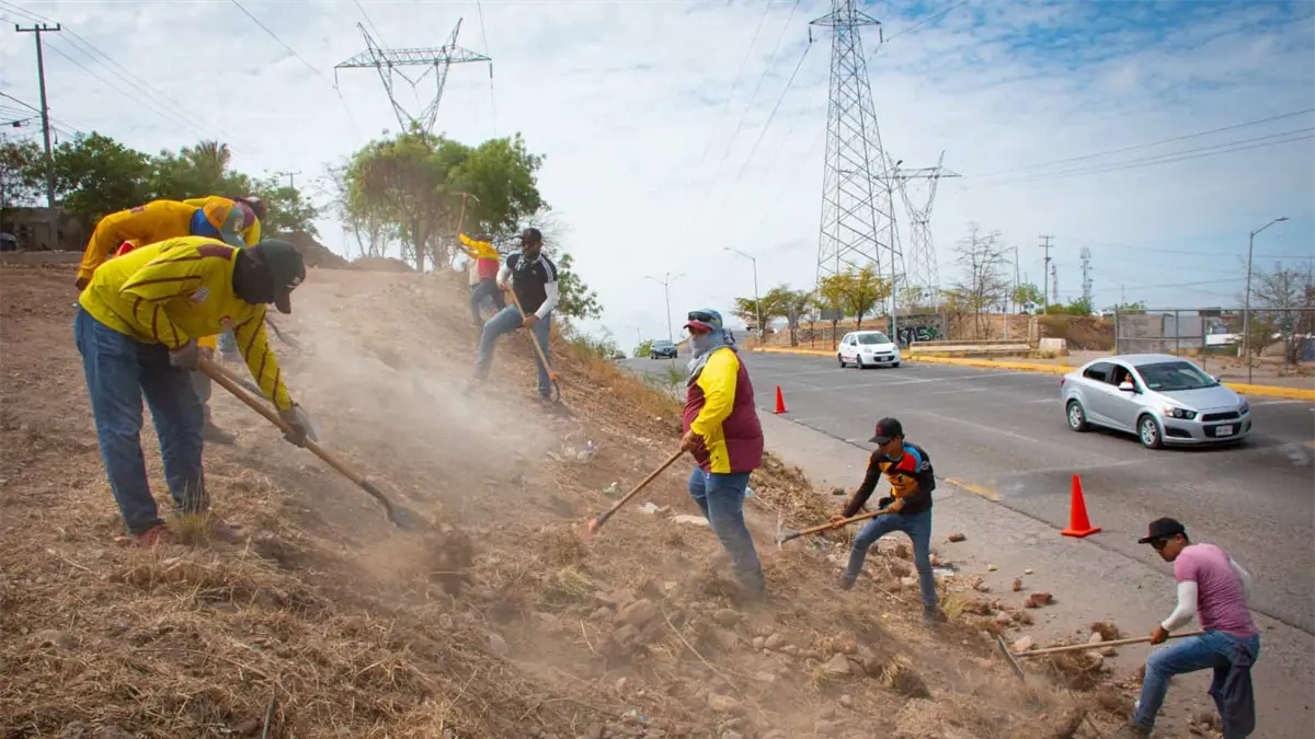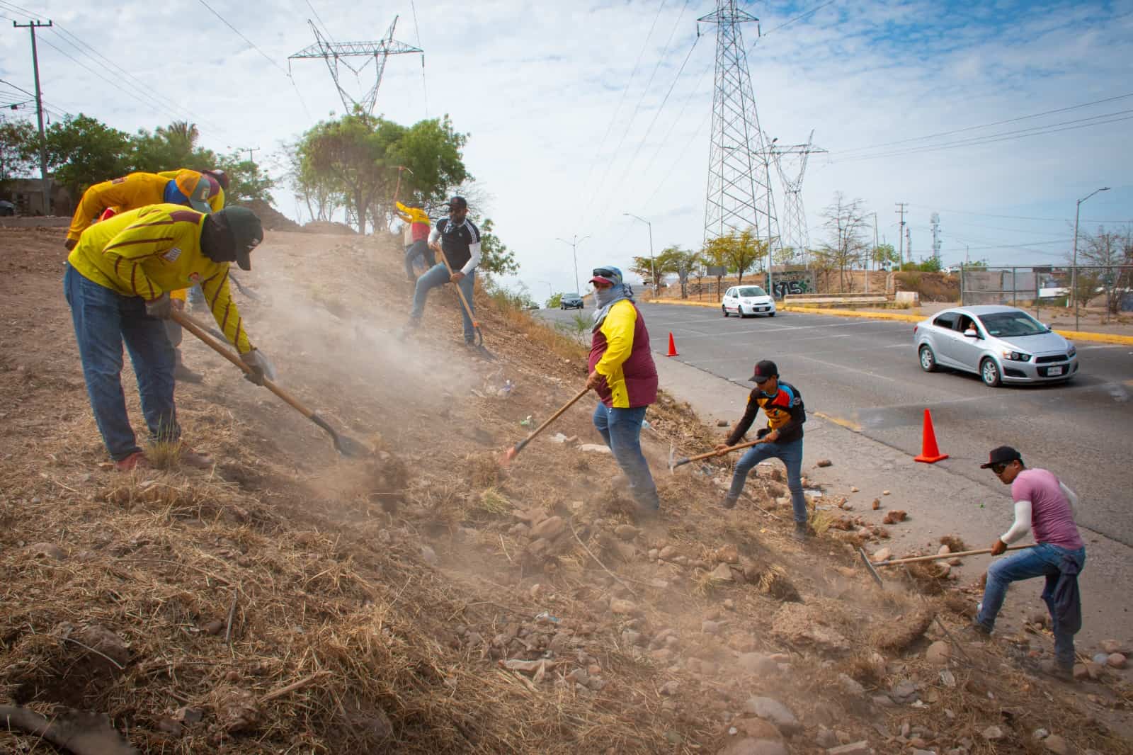 Por otro lado, en la avenida Álvaro Obregón, entre Mina de Copala y Las Minas (justo en la calle ancha donde se instala el tianguis de Los Huizaches) continúan con las labores de limpieza y rescate de espacio público, restauración, y plantación de wedelias, plantas de ornato, árbol de venadillo y lluvia de oro.