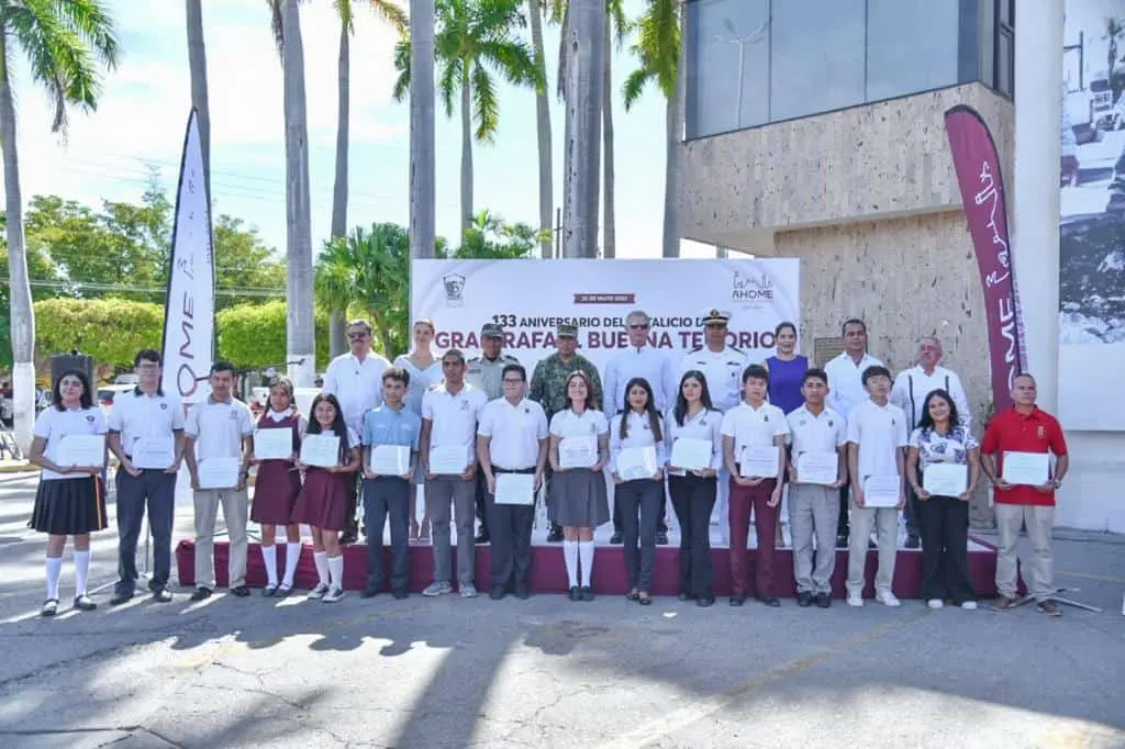 El Ayuntamiento de Ahome, a través de la Dirección de Educación, conmemoró con acto cívico el 133 aniversario del natalicio del General Rafael Buelna Tenorio, conocido como «El Granito de Oro».