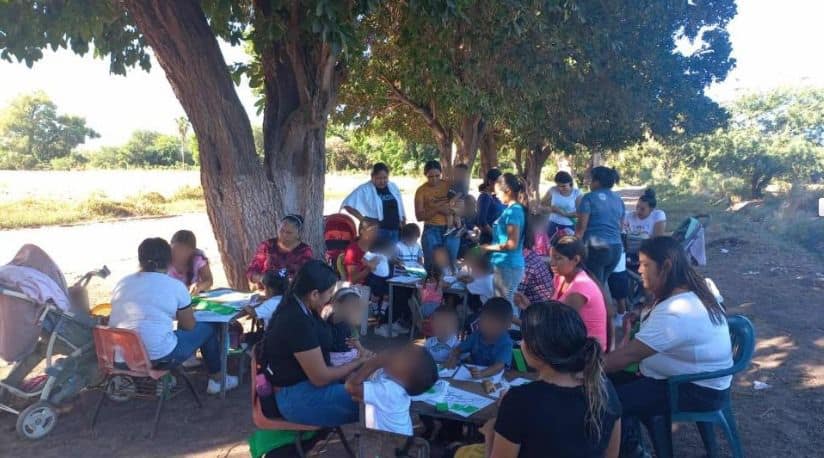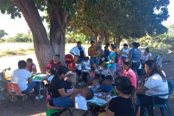 Hay recursos pero no terreno; niños indígenas estudian bajo los árboles en Goros, Ahome