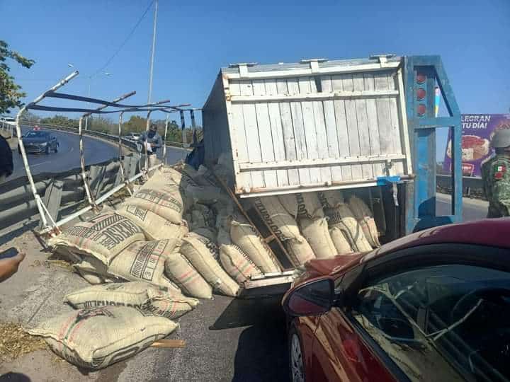 Tras el incidente se perdió parte del producto que transportaba la unidad, lo cual se presume que café que sería llevado a otro sitio.