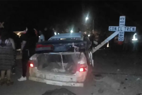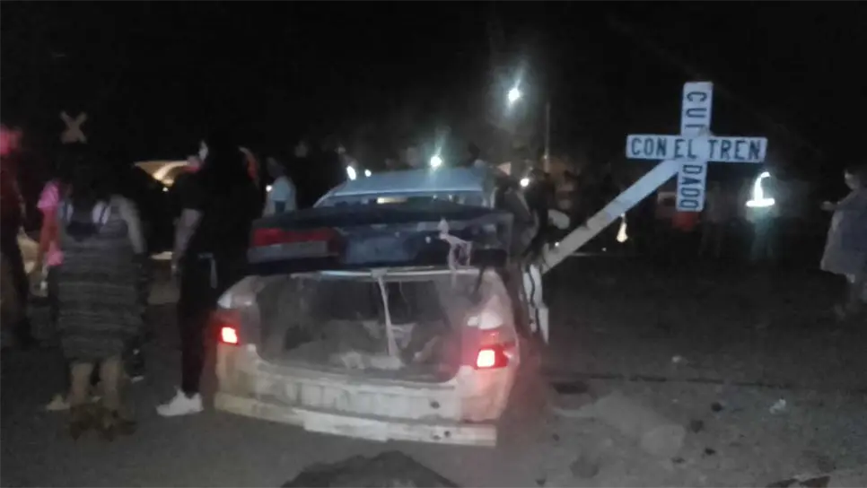El tren embistió y arrastró varios metros el vehículo, hasta quedado atorado entre los rieles y un señalamiento del paso de León Fonseca.