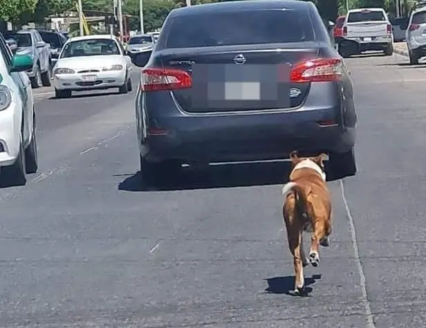 Perro sigue el vehículo de sus dueños tras abandonarlo en Los Mochis