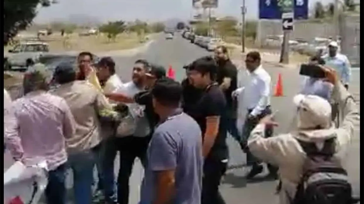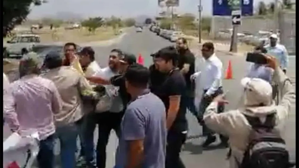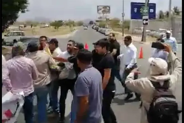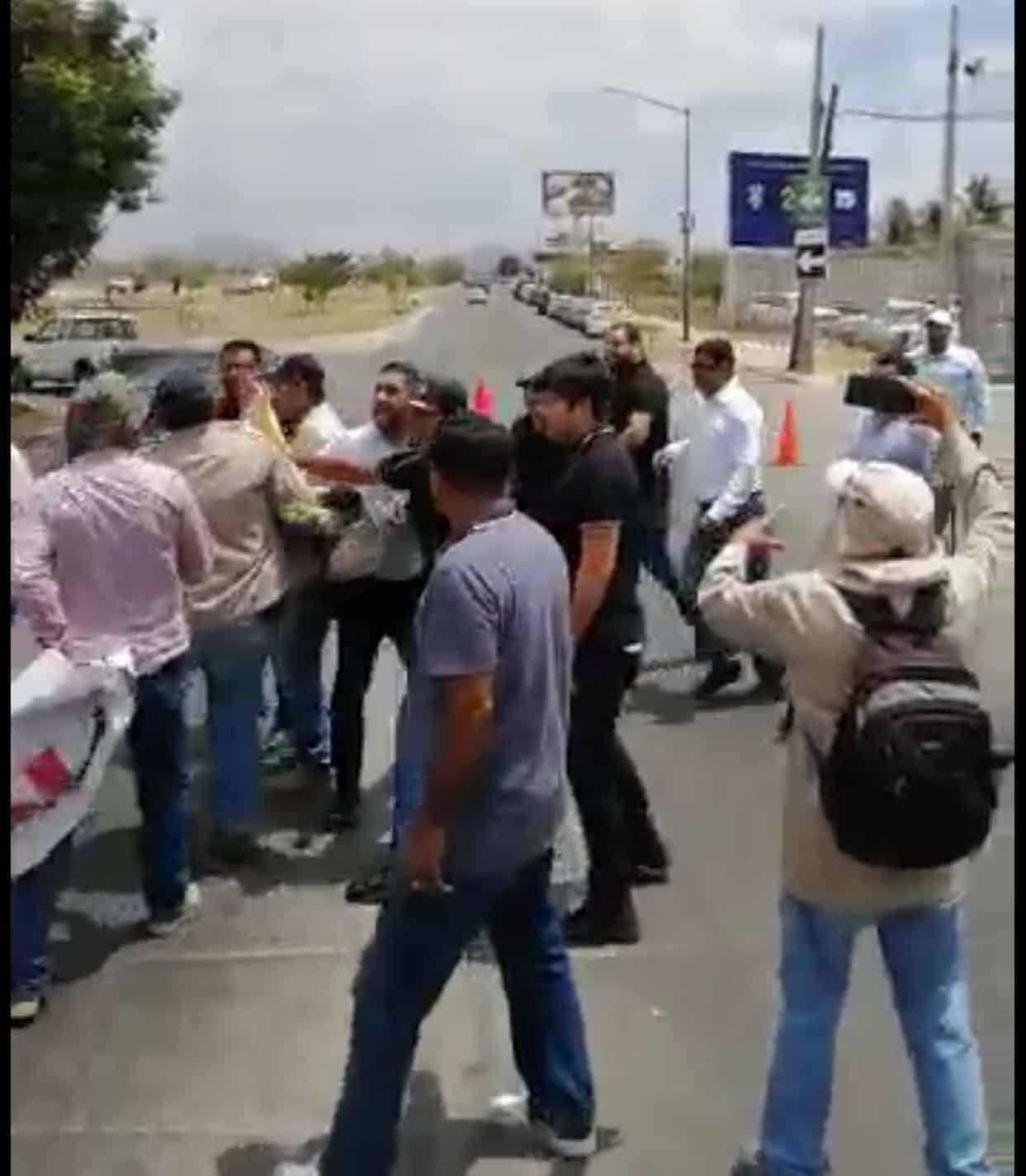 Entre forcejeos y acusaciones como «porros» los manifestantes y la gente de seguridad se empezaron a agarrar a golpes y les arrebataron sus pancartas.
