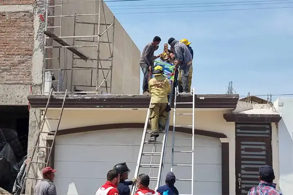 Para poder bajar al albañil fue enserió traer una unidad escalera y realizar acciones con una camilla rígida.