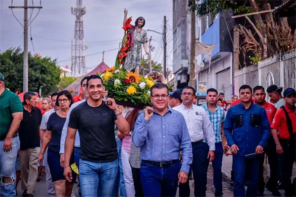 Para acompañar a los habitantes de la sindicatura de Villa Unión, el Alcalde de Mazatlán, Édgar González asistió al tradicional baño de San Juan Bautista.