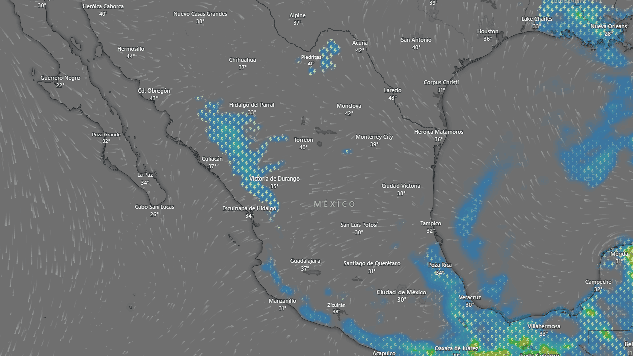 Una línea seca se extenderá sobre el noreste de la República Mexicana en interacción con la corriente en chorro subtropical e inestabilidad atmosférica superior, generarán vientos fuertes con tolvaneras en el noroeste, norte y noreste del país, así como lluvias y chubascos vespertinos, acompañados de descargas eléctricas y posibles granizadas en Sinaloa, Coahuila, Nuevo León y Tamaulipas, con lluvias puntuales fuertes en Chihuahua y Durango.