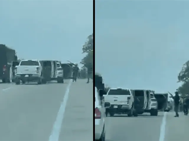 Un conductor que circulaba por el mismo lugar logró captar en video el momento en el que el comando armado tiene detenido al autobús donde viajaban los policías.