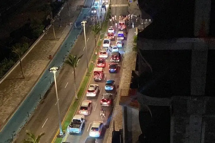 Tras estar sin energía eléctrica, turistas toman Avenida del Mar en Mazatlán