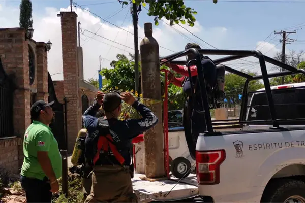 El reporte se dio cuando un trabajador de carpintería tomó un tanque que contenía gas cloro y se trasladó a una recicladora de fierro viejo, en donde pretendía vender el contenedor.