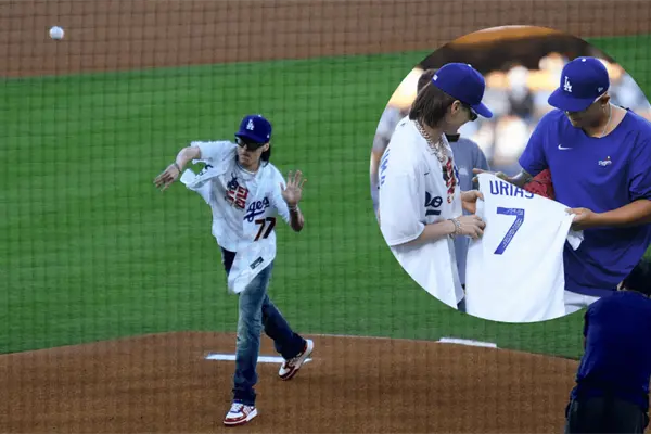 En esta ocasión, «Peso Pluma» fue invitado por el equipo de Los Dodgers de Los Ángeles a lanzar la primera bola del encuentro que disputaron ante los Piratas de Pittsburgh, la noche de ayer.