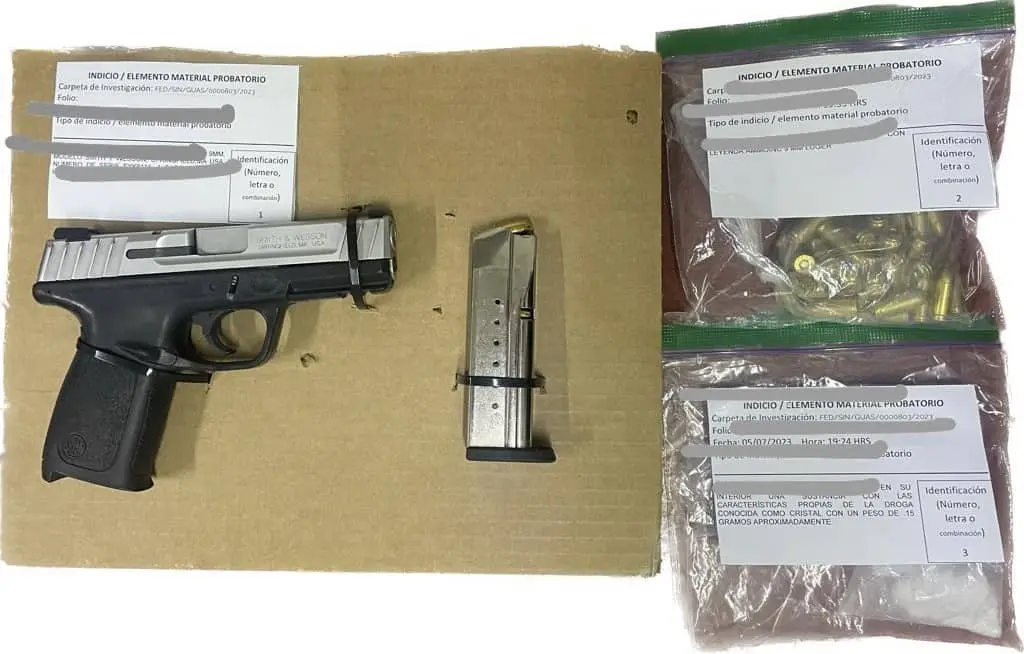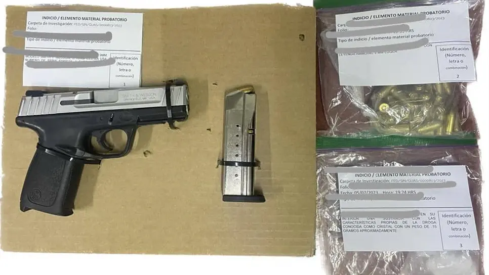 Posteriormente, al revisar la Cherokee, los policías de Angostura, localizaron los cartuchos útiles junto a los asientos, mismos que fueron asegurados. Asimismo, encontraron una bolsa con droga sintética, misma que al ser revisada resultó ser metanfetamina, mejor conocida como cristal.
