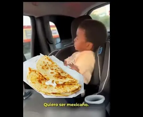 - Ante la pregunta de por qué quiere ser mexicano, el niño responde de manera contundente: «Porque amo las quesadillas».