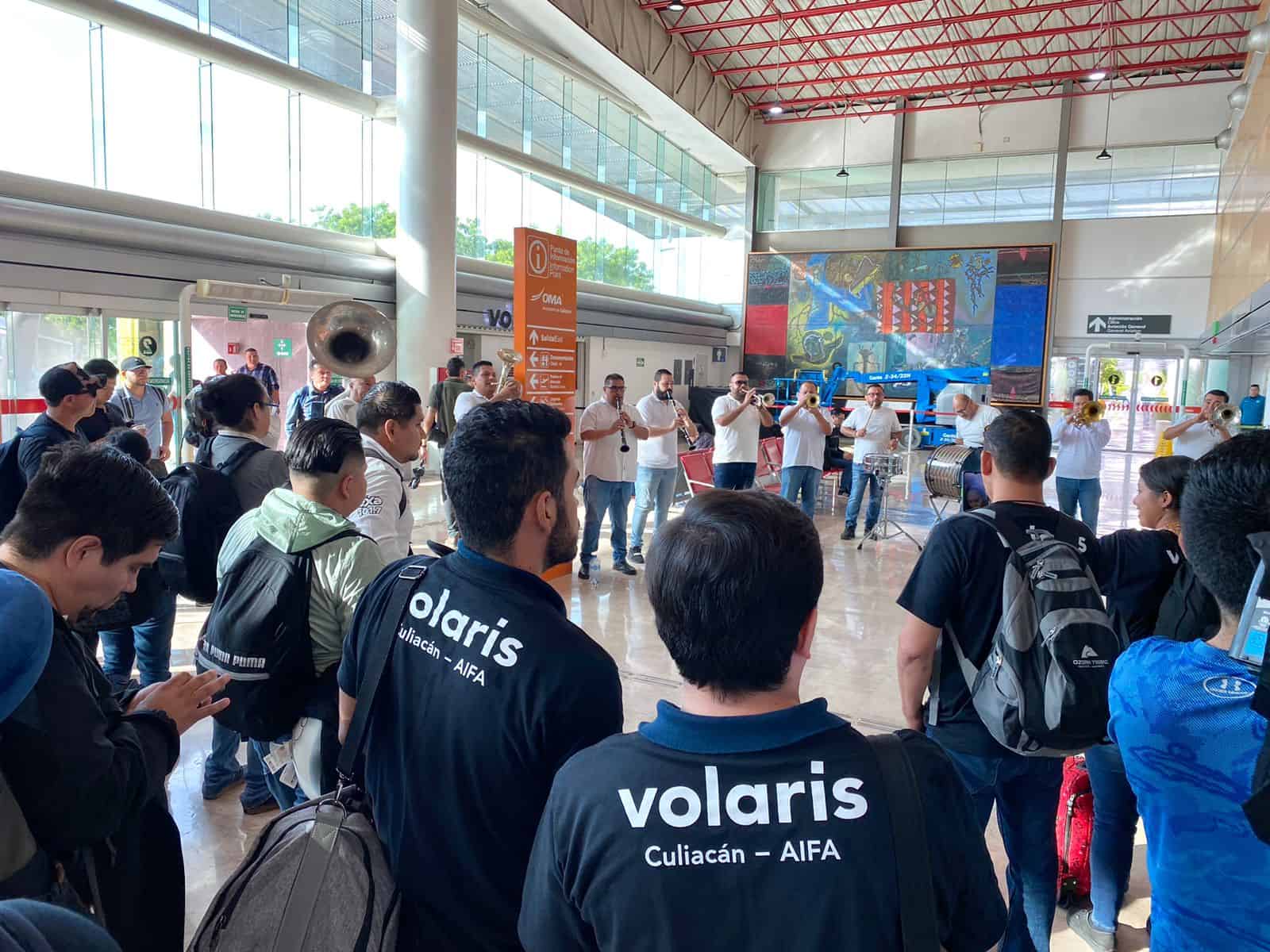 Durante la salida de los pasajeros de Volaris rumbo al Aeropuerto Internacional Felipe Ángeles fueron acompañados con música de banda y recibieron una playera negra de recuerdo, además de souvenirs por parte del Ayuntamiento de Culiacán y de la aerolínea.