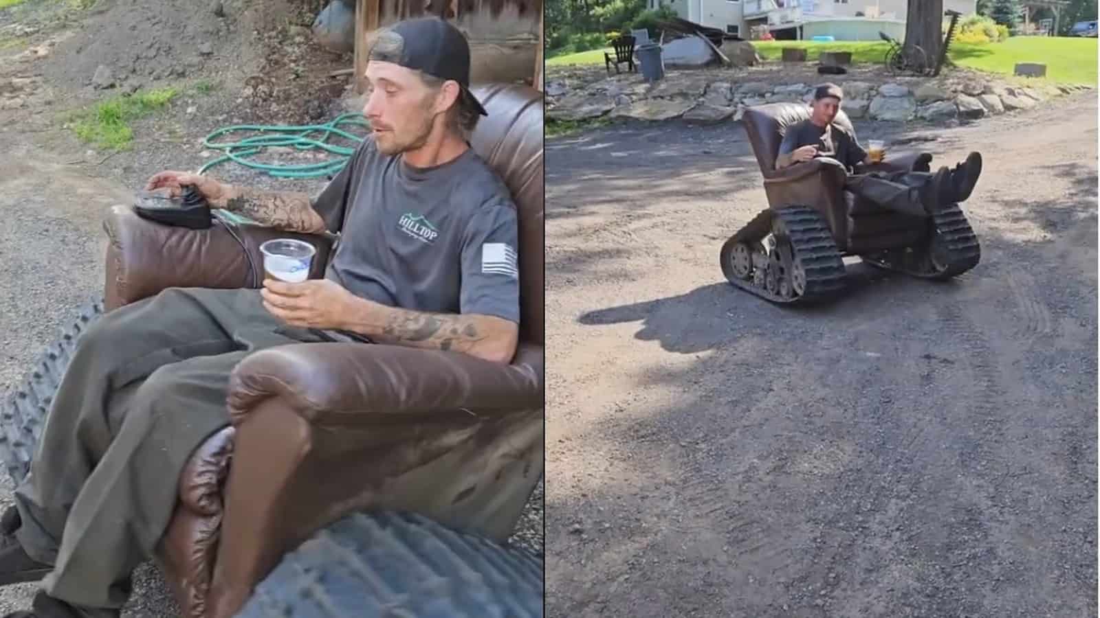 A través de la cuenta de TikTok -@mfdubs- el usuario Mf Dubs compartió el video de su invento en el que muestra un peculiar sillón reclinable que camina sobre rieles como un tanque de guerra.
