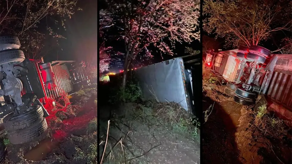 Tráiler se sale del camino en Elota y por poco termina en tragedia