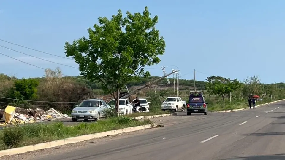 La tarde de este jueves, un camión de volteo derribó un poste de luz en la colonia Antorchista, en Culiacán; tras lo ocurrido, los cables de corriente quedaron sobre la ampliación Álvaro Obregón.
