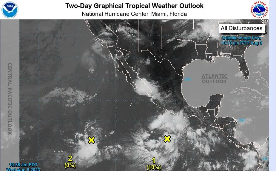 El Servicio Meteorológico Nacional (SMN) informó que ya son tres zonas de baja presión las que se vigilan en el Océano Pacífico con potencial para el desarrollo ciclónico de «Fernanda, Greg y Hilary» siguientes fenómenos con nombre de la temporada de huracanes 2023.
