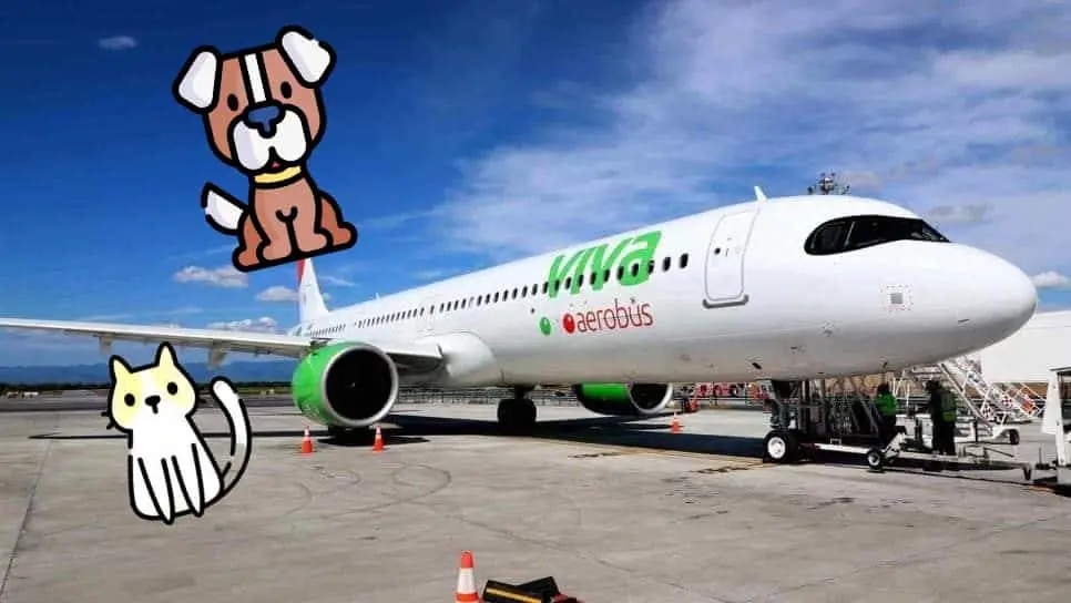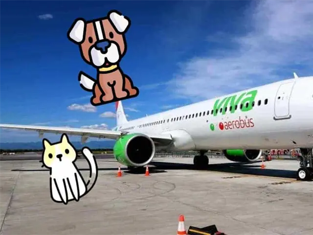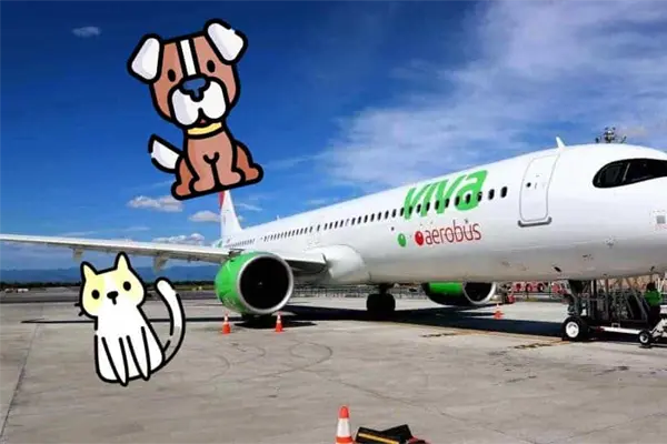 - Viva Aerobus: Permite a los pasajeros viajar con gatos y perros por una tarifa extra de 450 pesos mexicanos en vuelos nacionales y 45 dólares en vuelos internacionales. Las mascotas no deberán exceder el peso de 10 kg, algo que incluye el peso del contenedor.